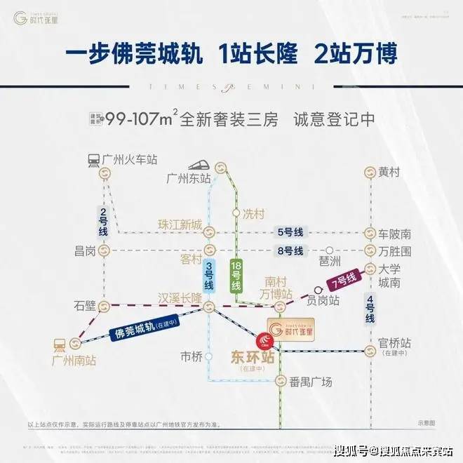 交通方面,项目150米到城轨站。1站即达长隆站,可换乘地铁3和7号线,2站到万博可以环乘18号线、30分钟到珠江新城。
