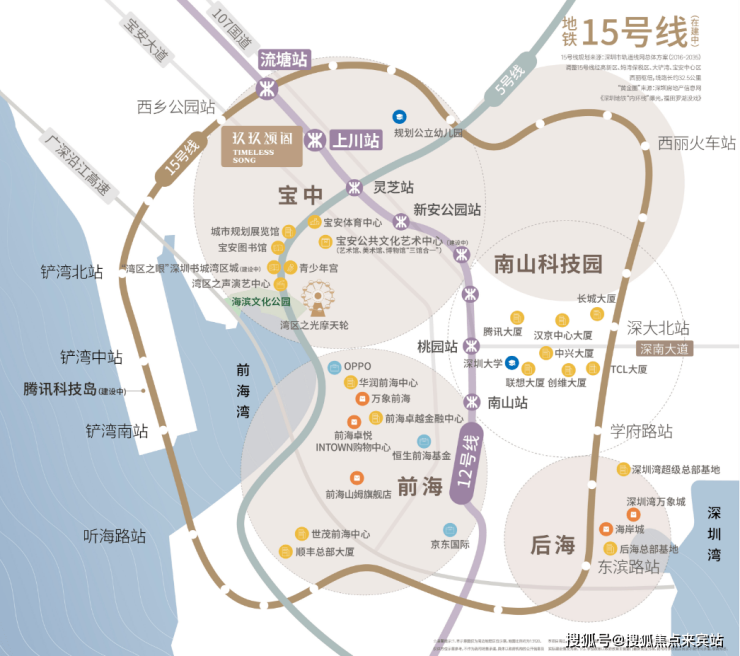 2km范围内悦享千亿大湾区会客厅配套:包括“湾区之光”地标摩天轮、欢乐海港、滨海文化公园、宝安体育场、图书馆、青少年宫、演艺中心等。