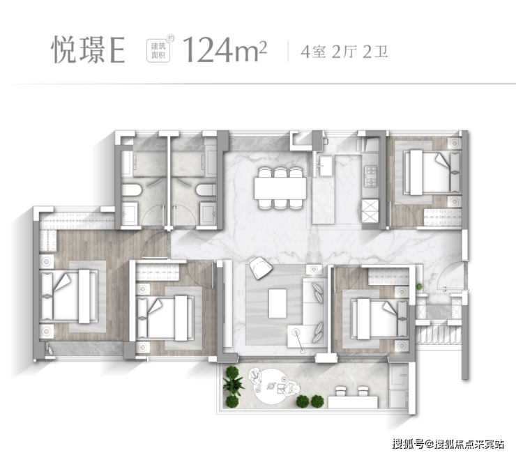 厅卧空间灵活改造约8.4米双面宽阔景阳台,匹配全生命周期使用