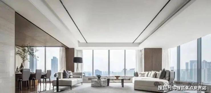 一如此次堪称教科书般的空中会客厅;一如超11米的超级挑高、如艺术厅般的社区大堂;一如逐渐兑现的大面积玻璃和灰色金属铝板组成的精奢立面...