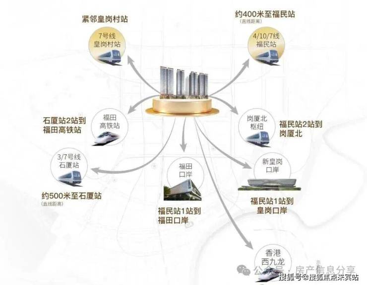 ·1站双口岸 ·2站福田高铁站 ·2站岗厦北枢纽 ·双地铁口 四地铁线