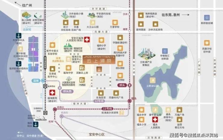 在交通配套方面,云上润府拥有便捷的交通网络,周边多条公交线路及地铁线路交汇,为居民出行提供了极大的便利。项目距离11号地铁线“桥头站”约700米,1站到福永可换乘12号线,3站到机场,5站到宝安,6站到南山前海湾,11站到南山高新园,12号地铁线“福海西站”约1.5公里。项目紧邻主要交通枢纽,无论是前往市中心还是周边城市,都能轻松实现快速通勤。既能享受地铁便捷,又能不受噪音影响周边另规划有20、18、26号线等多条地铁,以及宝安机场、海洋新城超级码头(规划中)、国际邮轮港(规划中),轻松构建覆盖全城,乃至湾区和国际的高效通勤圈。
