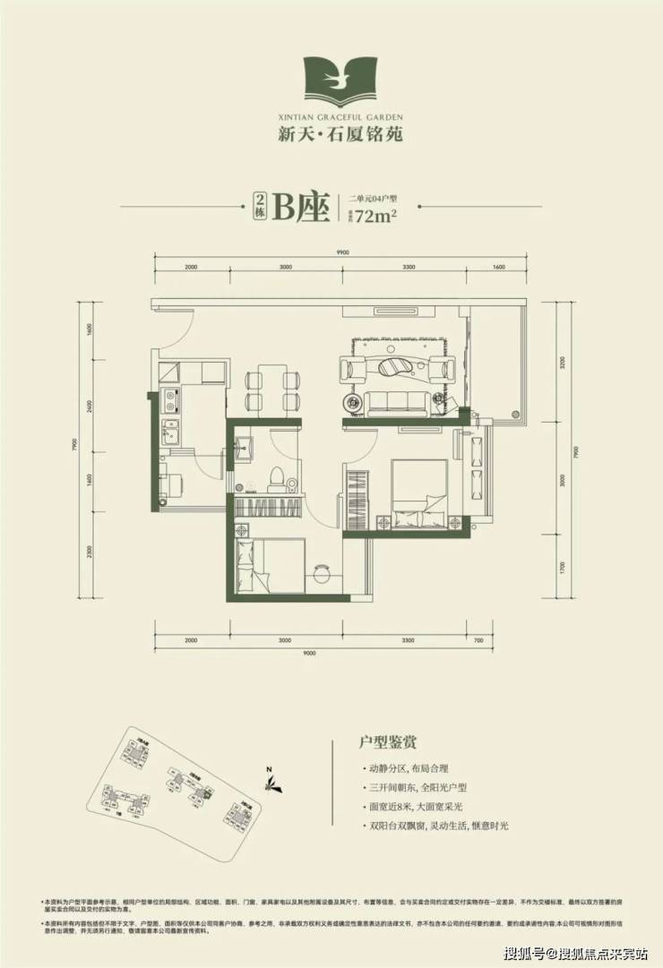 2栋B座二单元04、05户型:面积约为72-74㎡的2房2厅1卫