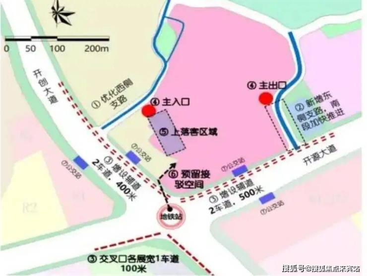 项目位于开创大道与开源大道交汇处,不靠近地铁站,大概2km,公共交通只能靠公交车来接驳。
