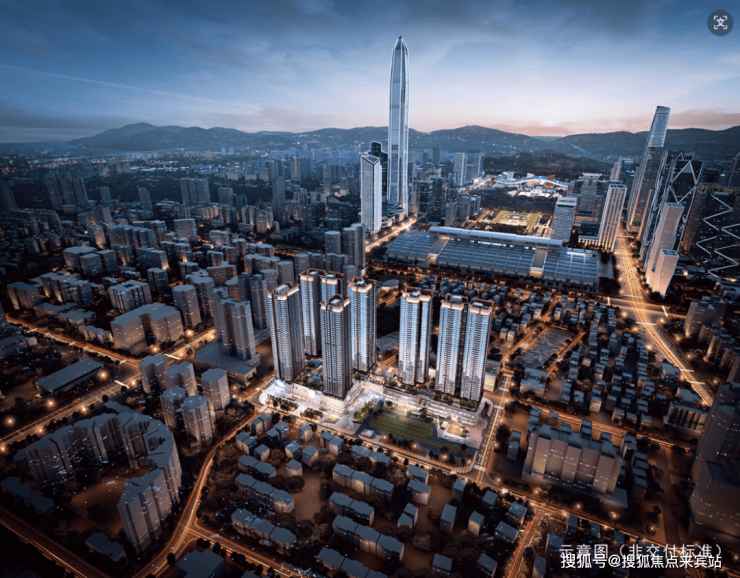 项目位于深圳福田中轴以南, 从项目基地的区位及周边环境出发,充分利用北面稀缺景观资源和地理优势,打造一个文化与生活的载体,兼具优雅烟火气的城央住区。