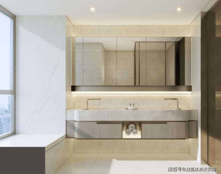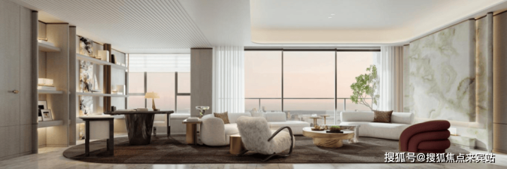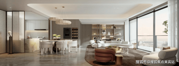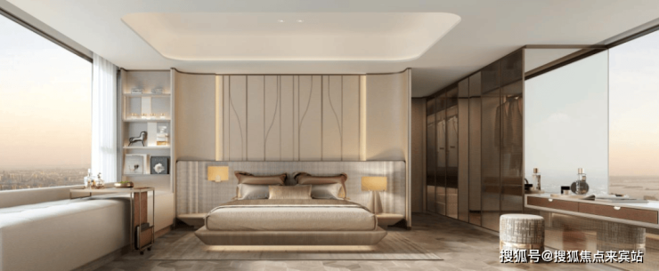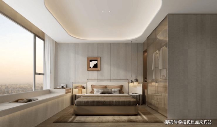 项目建筑立面设计采用国际美学风格,旨在成为城市地标。设计注重表现力与尊贵感,通过曲线和圆角元素柔化建筑形体,避免多余装饰,以自由舒展的弧线勾勒艺术感天际线。立面材质细节沿用圆角处理,缓解建筑与城市界面的冲突,营造柔和、温润、精致的形象,平衡现代感与经典个性。