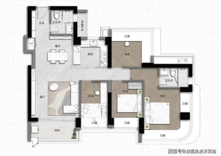 项目户型涵盖建面约92-173m²面积段,采用五梯六户布局。设计亮点包括客餐厨阳台一体化、全生命周期户型、大方厅设计以及主卧270°转角弧形凸窗。其中,173m²户型注重南北通透,配备步入式衣帽间和独立家政间,体现功能性与舒适性。实现全生命周期场景。
