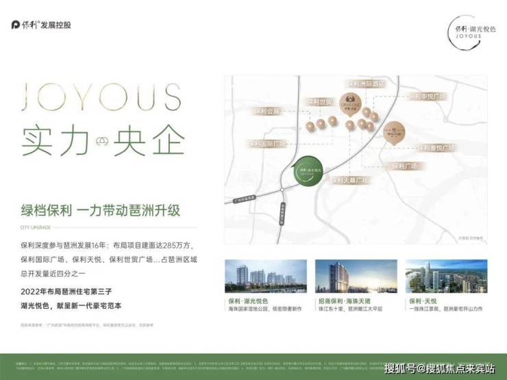 保利湖光悦色主打低密度生态居住体验,依托海珠湿地公园的天然优势,打造高端改善型滨水社区。作为海珠区内少见的现楼在售楼盘,该项目规划独梯独户设计,提高居住私密性。同时,保利作为央企房企龙头之一,具备成熟的高端住宅打造经验,湖光悦色在产品设计、品牌背书、资产安全性方面都具有一定优势。此外,作为广州CBD“珠金琶”黄金三角的一部分,琶洲板块的发展将进一步提升该区域的价值,未来潜力不容忽视。
