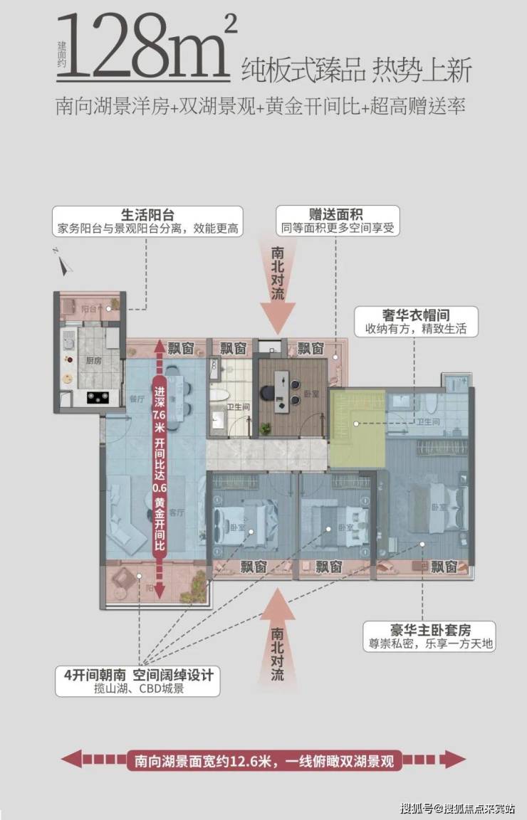 洋房采用纯板楼设计,通透对流,最大化景观视野,目前在售第五期【天岚】,产品为97-167㎡三至五房洋房。