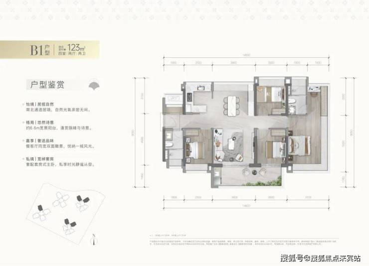 这是首批推出的最大户型,采用LDKB一体化设计出来的升级版四房户型,足以比肩其它产品的180+㎡的空间尺度感,属于可变4+1格局。