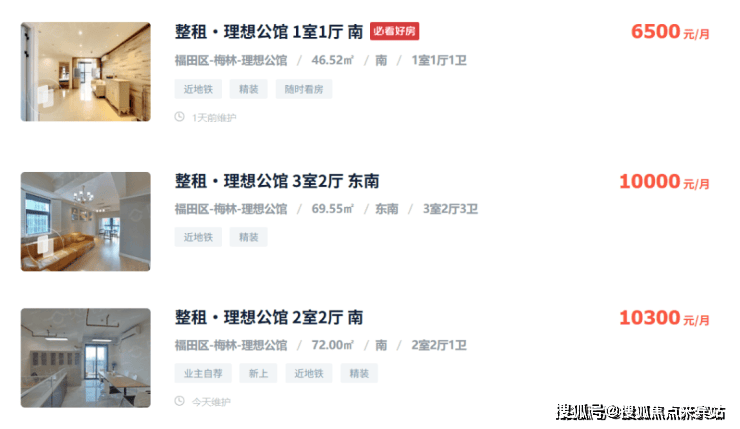 上梅林片区居住氛围浓厚,两房租金普遍在6000以上,理想公馆45㎡租金6500,72㎡两房租金10000以上,华强创领寓85㎡两房租金也高达9000-11000元/月。