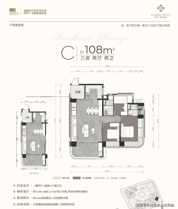 最新信息:项目位于南山前海听海大道与妈湾二路交汇处,距离地铁5号线妈湾站仅约300米。据悉,本次将推出410套可售住宅,主推建面约108-148㎡的三至四房,预计4月开盘入市。