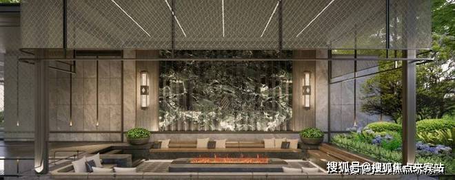 精奢园林:对标华尔道夫酒店精奢景观,设计泳池底部定制艺术瓷砖大面铺装御湖境水纹,以泳池水景为据点围合,一廊五境布局畔水归家,水系交汇实现引湖入园,五重叠景引画入境,封藏四季园林美学。