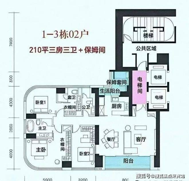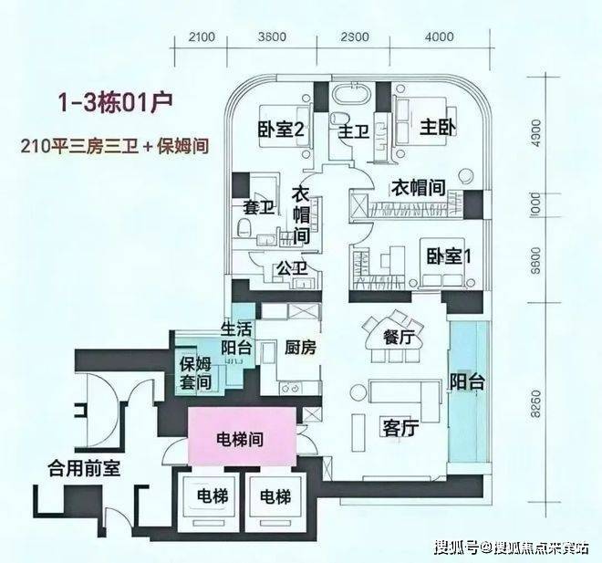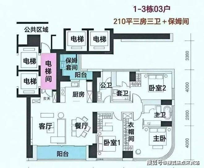 分布在C栋,4梯3户,层高3.3米,专梯入户。作为起步户型,设计为三房而非四房,保证圈层纯粹。总价预计3500万+,但需注意部分户型有遮挡。