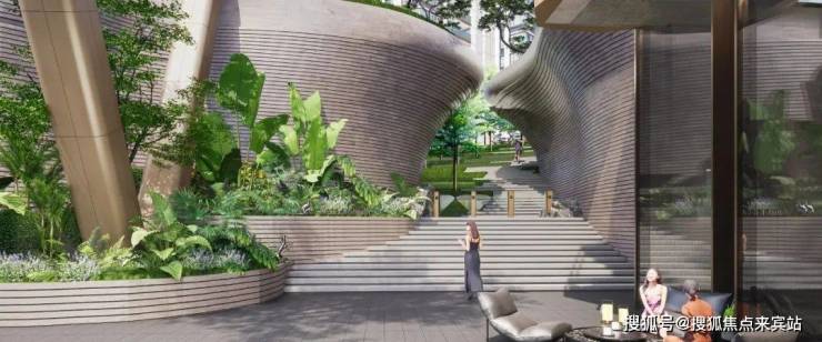 约60米恢弘高门大气开场,将辨识度和仪式感直接拉满。酒店式环岛落客区,让每一次归家犹如一趟轻度假,给予业主满满情绪价值。