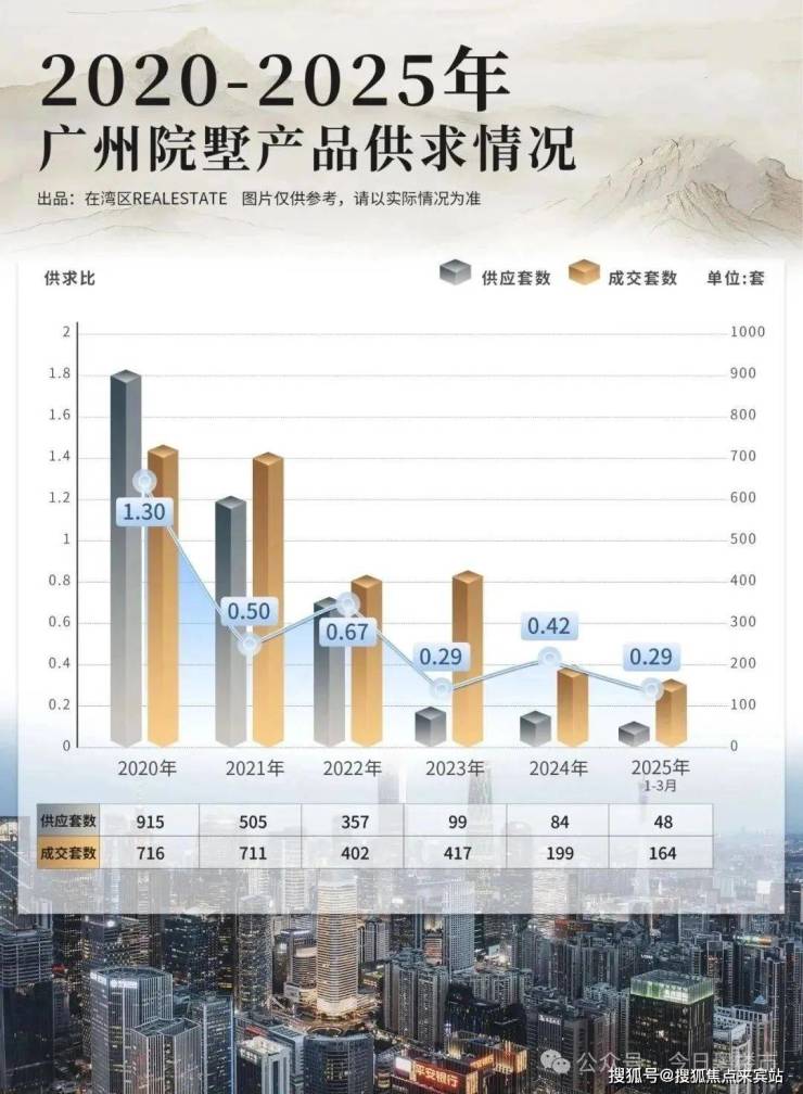 据不完全统计,广州院墅供求比直线下降,连续5年低于1.0;尤其在今年,截止3月中旬,全广州仅上新48套院墅,但已成交164套,供求比低至0.29。相当于,全广州每上新1套别墅,就有4名购房者,争相抢购。