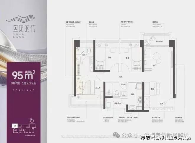 项目有2个面积段,说3种户型比较合适,95平米的3房2厅2卫A户型,95平米的3房2厅2卫B户型,99平米3房2厅2卫;
