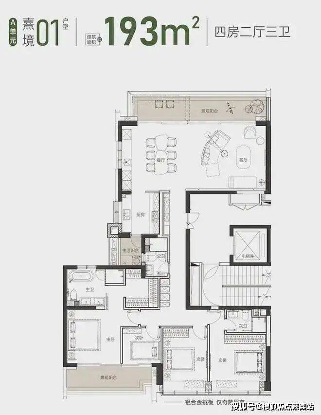 珑樾山建面约 193 ㎡ 01户型 4房2厅2卫