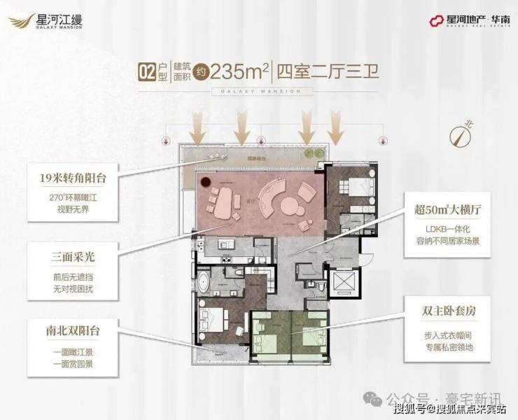 ——户户一线望江,超100㎡LDKB巨厅,9米转角阳台,270°环幕江景(部分户型)