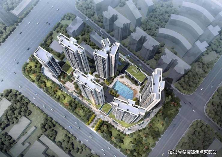 共规划建设7栋楼体,其中5栋为28-38层的高层住宅,共504户,均采用2梯4户或3梯4户的设计,另有1栋6层商业和1栋21层的办公产品,此外,小区内设有泳池配套。