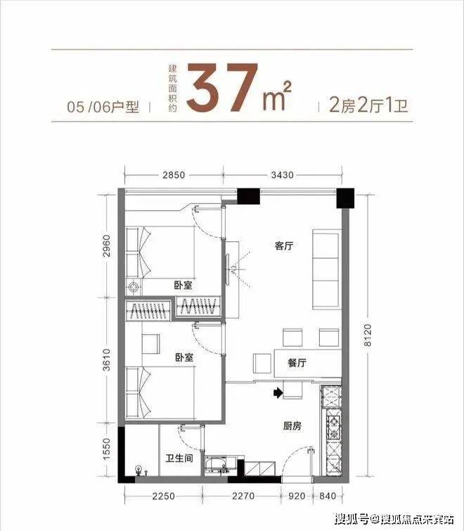 此次爆出的开发商一手保留单位,建筑面积约37平2房,实际套内使用面积约54/64平。