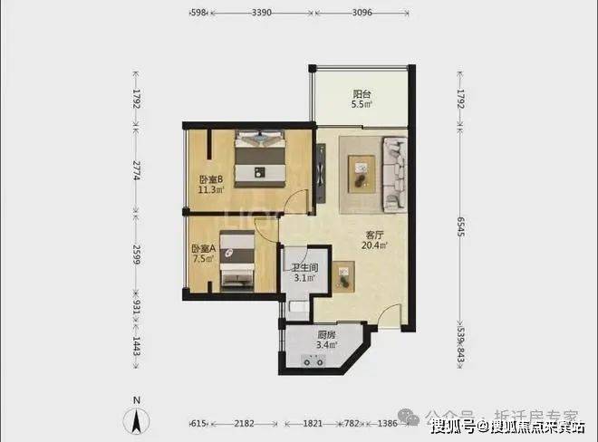 太古城南区62㎡的户型实际套内实用面积在51㎡左右,精致的小两房设计。