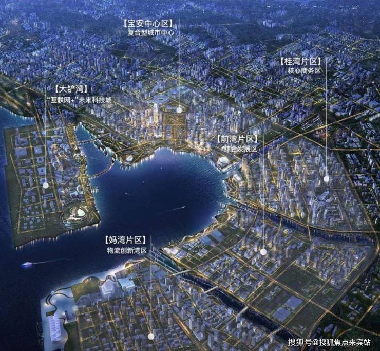 扩容后,以妈湾、前湾、桂湾、宝中和大铲湾围合而成的前海湾正式跃升湾区中心,2035年前打造世界级的城市中心。