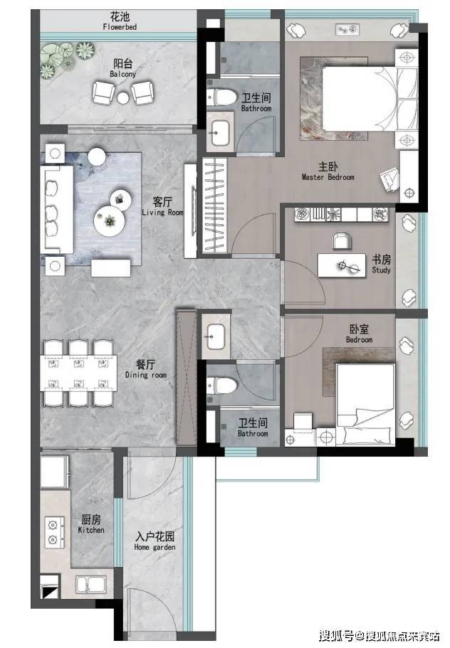 项目约45万m²大体量,涵盖住宅、主题园林、下沉式水景、幼儿园及九年一贯制学校、精品市场等