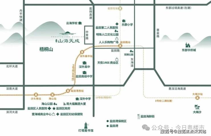 作为山海港城,盐田海岸线长达19.5公里,拥有世界级生态旅游资源,山、河、林、海、湖等。为推动文旅产业的创新发展,盐田充分发挥自然资源优势,形成具有盐田生态特色的文旅IP,著名的“深圳八景”盐田独揽三景:“一街两制”❍❍山海天成望辰府售楼处电话:400-8352-501⇝⇝(售楼处更新)❍❍山海天成望辰府营销中心热线400-8352-501⇝⇝(营销中心预约看房热线)(中英街)、“梧桐烟云”(梧桐山)、“梅沙踏浪”(大小梅沙),未来将打造世界级滨海旅游目的地
