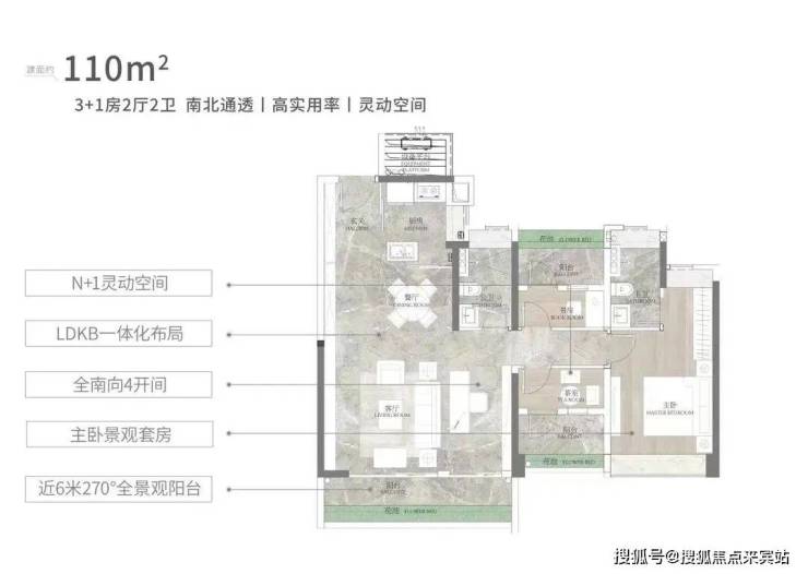 140平、160平都预留了+1的灵活空间,可根据家庭需求,改造成5房。而且都有独立的L型入户玄关,南北双阳台,主卧主卫270°观景飘窗。
