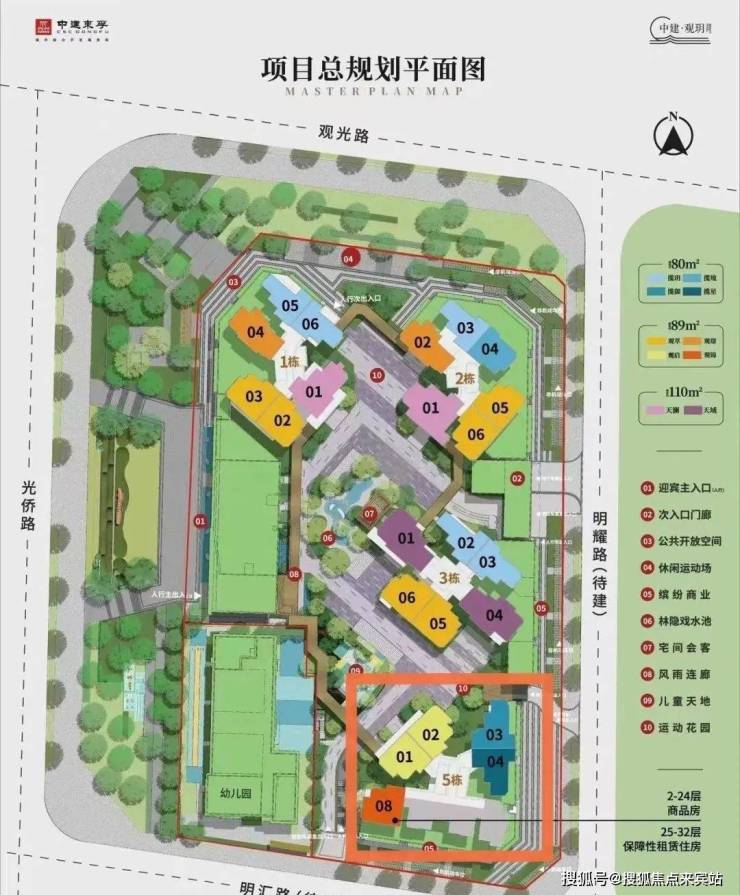 中建观玥占地约1.43万㎡,总建面约11.5万㎡,由4栋高层住宅+1所6班幼儿园组成,共计820套房源,其中租赁型保障房101套,可售商品房住宅719套,规划停车位约900个,容积率5.4。