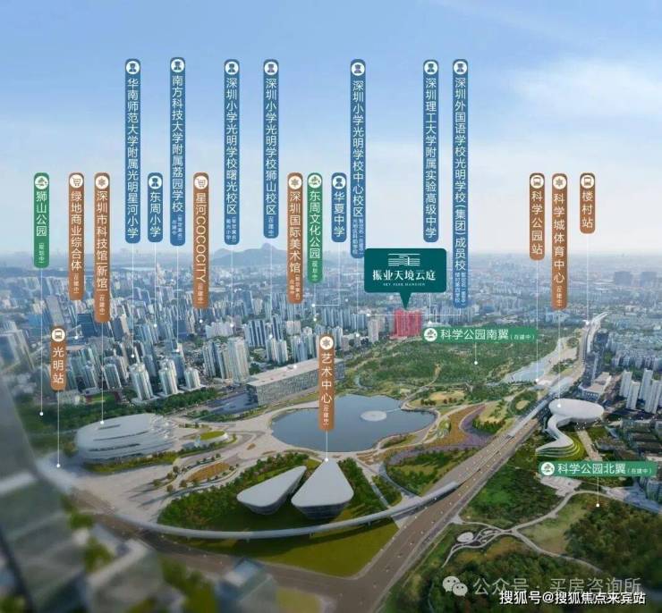 此外,科学公园周边还涵盖“一馆三中心”文体配套,除已建成的光明区图书馆、文化艺术中心、光明区群众体育中心,科学城体育中心已于今年6月底正式开工。