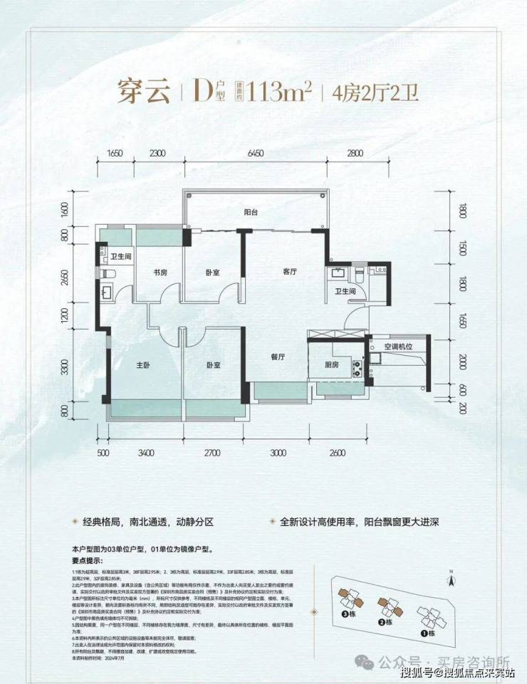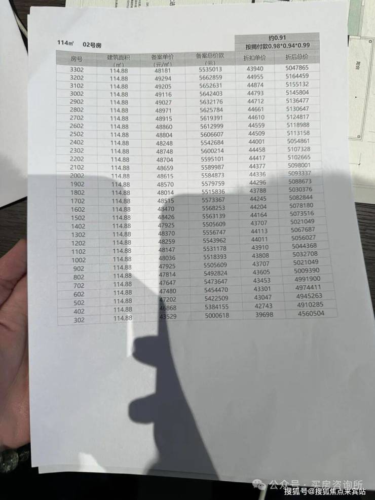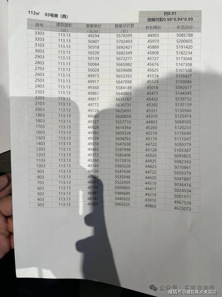 01户型113㎡折后总价约501-530万!02户型114㎡折后总价约456-516万,03户型113㎡,折后总价约462-520万!另有少量1栋141㎡南北通透,顶豪户型,折后总价约630-750万!