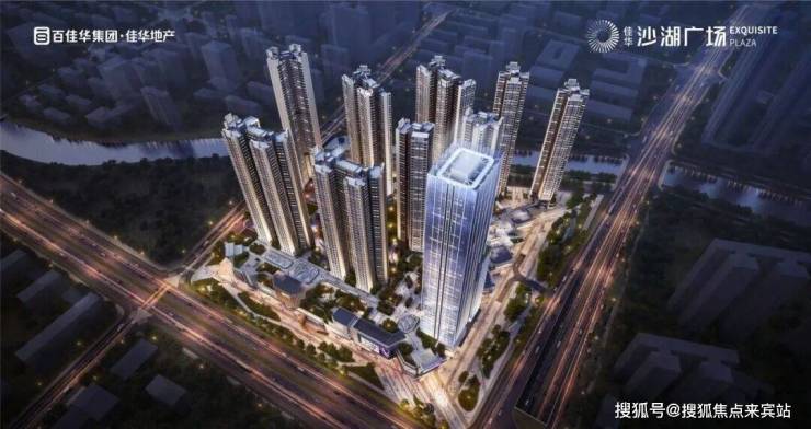 佳华沙湖广场,由佳华集团操盘,总占地面积约8.17万㎡,总建筑面积约62.2万㎡,计容建筑面积约42.6万㎡,容积率5.21,绿化率30%,共由6栋14个单元总高44-52F的住宅组成,其中1栋回迁房52F,2栋1/2单元回迁房50F,3栋1/2单元商品房50F,4栋商品房49F,5栋商品房44F,6栋1/3单元商品房46F,6栋2单元商品房47F,6栋4/5/6单元回迁房46F,6栋7单元办公+商务公寓45F,7栋规划1所幼儿园。