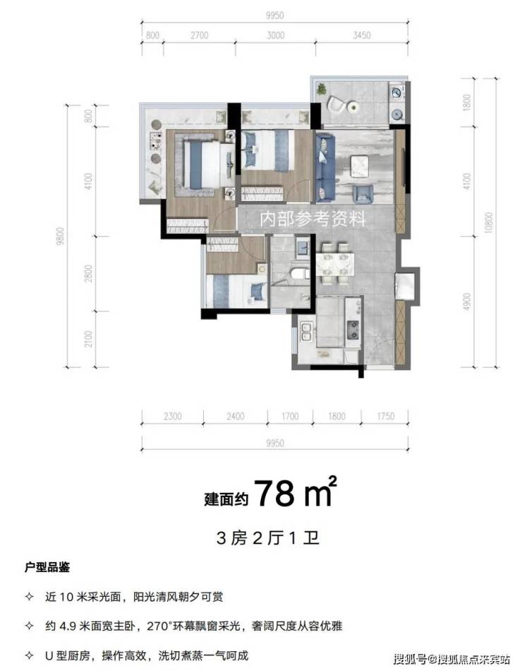 本次首开9栋,包括78㎡、99㎡、120㎡、138㎡3至5房户型产品。