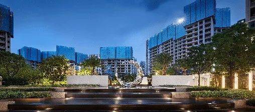新加坡酒店度假式泳池中央园林打造度假风泳池、叠水水景、下沉水吧及水中酒吧、儿童趣味设施等,打造度假生活体验。