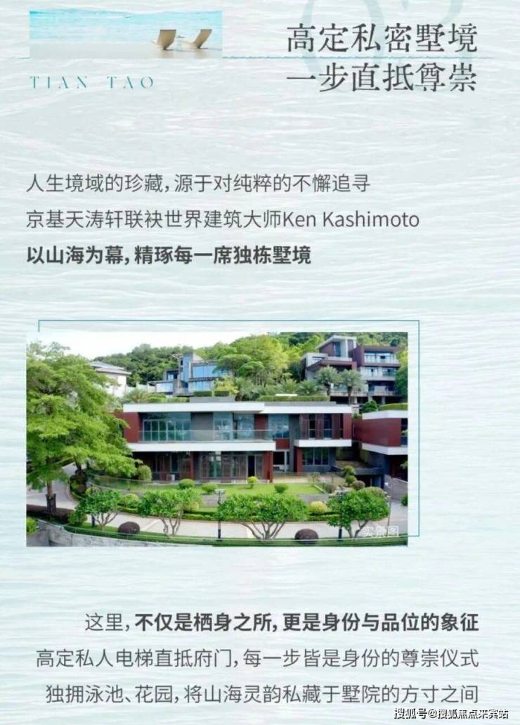 建面约399–656㎡定制墅境大宅,全球限量发售5席独院别墅,强调270°无遮挡海景视野与1800米黄金海岸线资源。项目坐落于40000平方公里海域视界之上,是京基集团在滨海豪宅领域的代表作之一,打造“世界湾区资产终极范本” 。