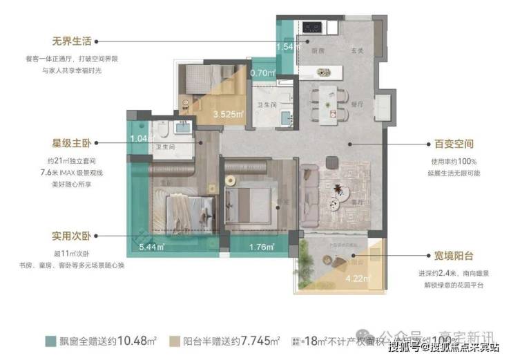 ②主卧约21㎡,7.6米IMAX景观线