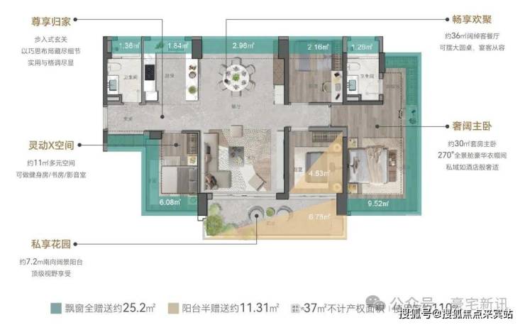 ③约25㎡星级主卧,坐享约12.3m景观周长线,非凡起居体验
