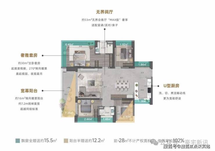 ②约16㎡南向瞰景阳台,约7.2m阔绰面宽,超越同级标准