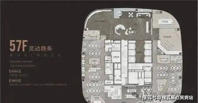备注:57、58、59楼是顶层复式,可做企业会馆、会所等,云端共享办公、总裁私密办公区、商务接待区、总裁级私密接待区、西餐厅、酒吧等应有尽有!