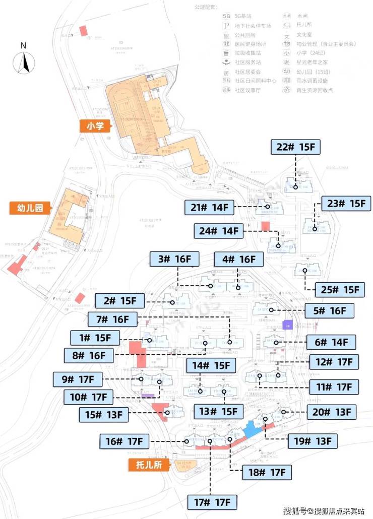 整个项目分成南北两个地块,其中南侧地块分布20栋住宅