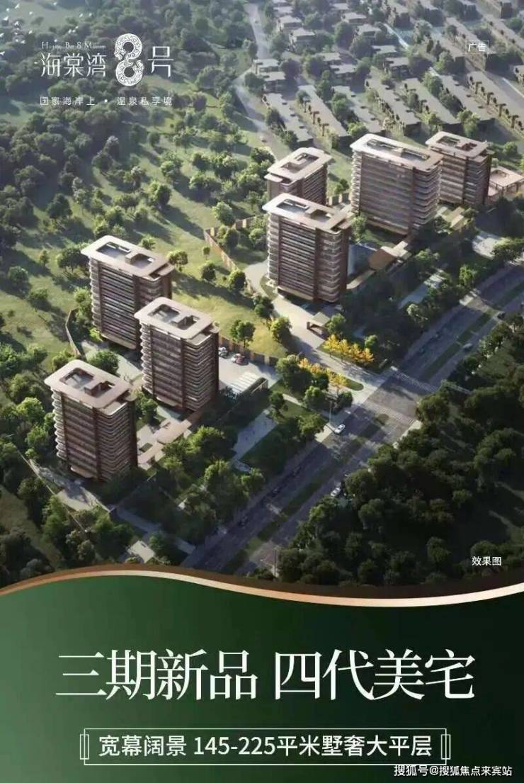 海棠湾8号是海棠湾南田板块最具品质、配套最完善的精品标杆项目之一,项目总占地约239亩,总建面积约25万平米,容积率仅1.2,绿化率40%,建筑密度仅25%,规划总数超过1000户的稀有70年产权旅居住宅产品,包含:小高层墅质公寓、花园温泉洋房、温泉院墅、双拼别墅、独栋别墅等全系列的旅居住宅。