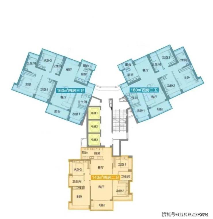 5栋为两个单元,均为三梯三户,分别是160平的四房以及143平的四房,160平户型南北通透,143平双龙抱珠,均为非常优质的户型,层高3.15米,总高42层,架空2层。
