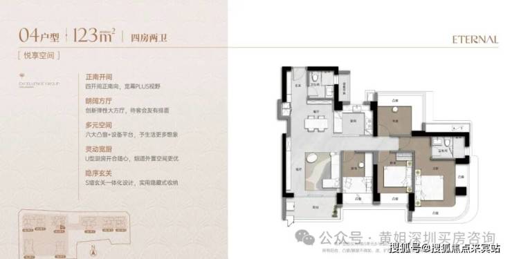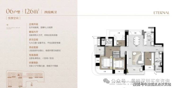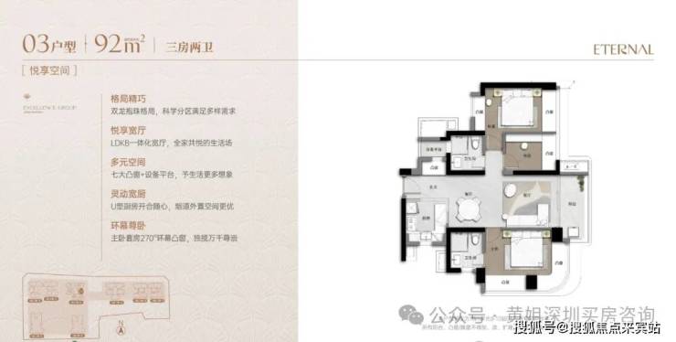 1. 超高使用率90%+:通过“弹性方厅”(可变空间)、设备平台外拓、多飘窗实现。