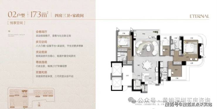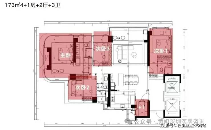 2. 梯户比优化:北区大户型(如173㎡)采用2梯2户专梯入户,南区3梯4户,接近1:1比例,减少候梯时间。