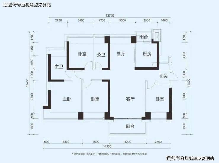 某日光豪宅约154平户型 尺度和前海瑧玺约128平4房类似