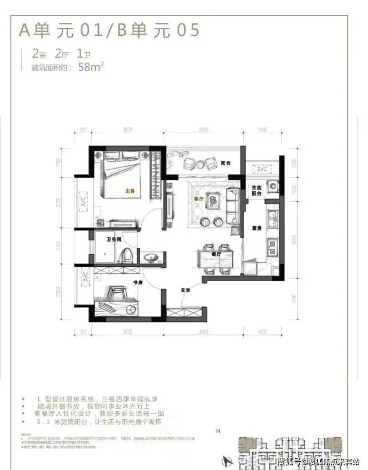 户型鉴赏建面约57-67㎡臻装两房准现楼