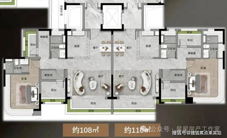 户型:约 108-140㎡的三至四房
