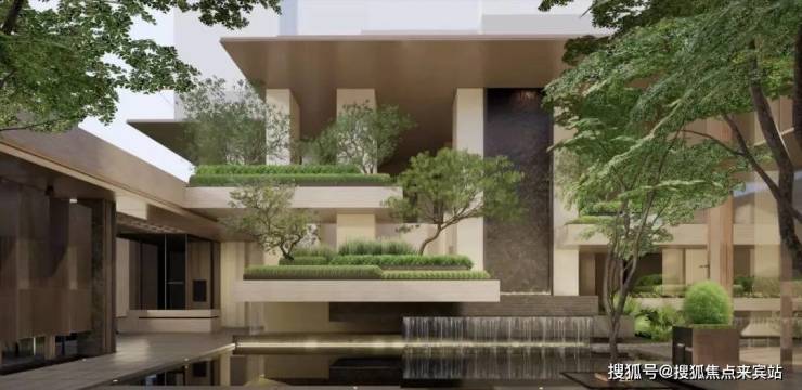 【自然水岸游泳池】:约400㎡无界亲子多元互动型泳池,与7栋架空层联动,在架空层内布置淋浴更衣、消毒池等功能,与周边绿化融合,无硬边界,绿植做隔断,旁边设置跌水景观。